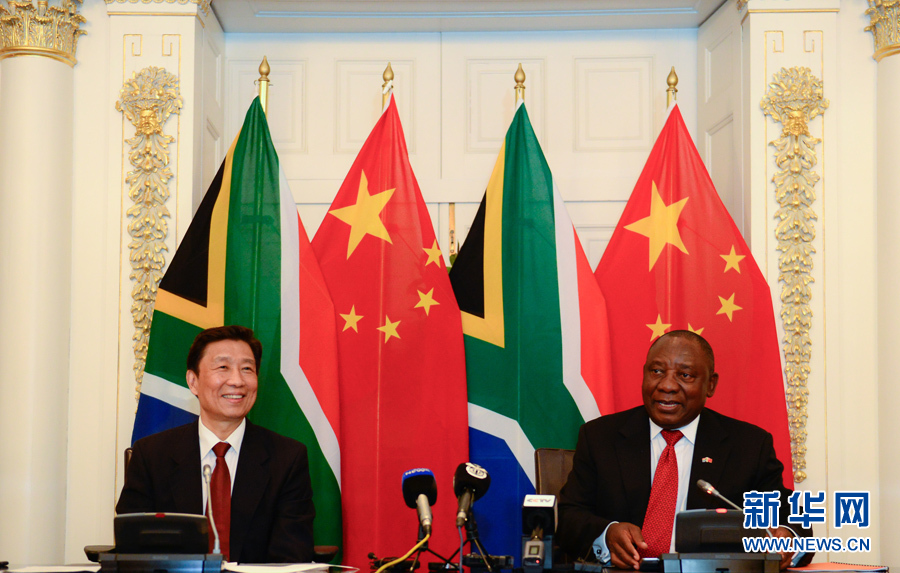 11月22日,正在南非访问的中华人民共和国副主席李源潮同南非共和国副总统拉马福萨在开普敦共同主持召开中国南非国家双边委员会第六次全体会议并致辞。新华社记者翟健岚摄
