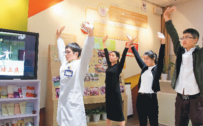 5月10日,上海江南智造园区工作人员在群团服务站开展医疗健康活动。新华社记者 刘 颖摄