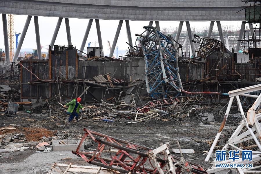11月25日,一位救援工作人员走过清理过后的事故现场。记者从江西丰城电厂“11·24”事故救援指挥部获悉,截至11月25日11时30分左右,事故现场清理搜索工作结束,事故处理重心已全面转入善后和事故原因调查。新华社记者 胡晨欢摄