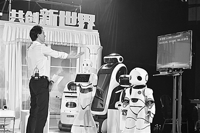 晓曼机器人正与人进行互动。