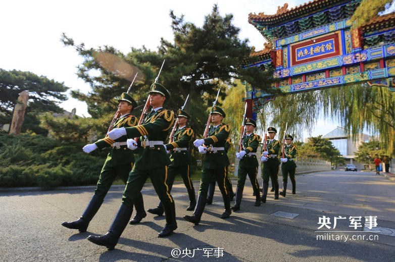 在钓鱼台国宾馆中有这样一支队伍,他们身着笔挺的礼服,头顶国徽威武庄严、手握钢枪英姿飒爽。他们担负着保卫国宾安全、执行司礼任务的神圣使命。他们代表着国家和民族的尊严,展示着中国军人的形象。他们就是“国宾卫士”(记者丁小七 路恒)