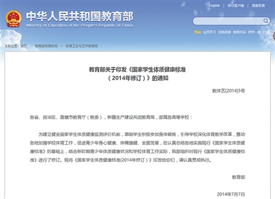 目前学校实行的相关体测标准依据的是2014年教育部印发的《国家学生体质健康标准》。 网络截图