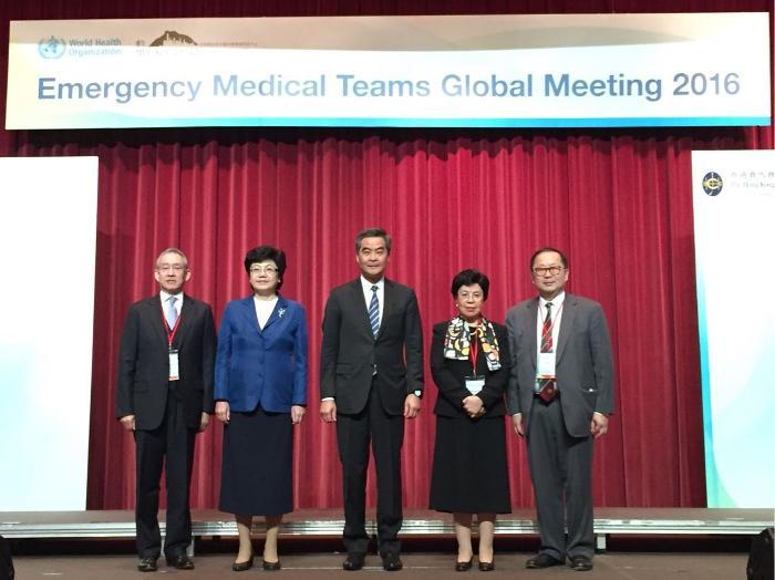2016年11月28日上午,世界卫生组织第三届全球应急医疗队会议在香港召开。香港特别行政区行政长官梁振英、中国国家卫生计生委主任李斌、世界卫生组织总干事陈冯富珍、香港医学专科学院主席李国栋等出席会议并致辞。来自全球50多个国家和地区的政府、卫生部门以及国际组织、国际应急医疗队所属机构的官员和专家约300名代表参加此次会议。