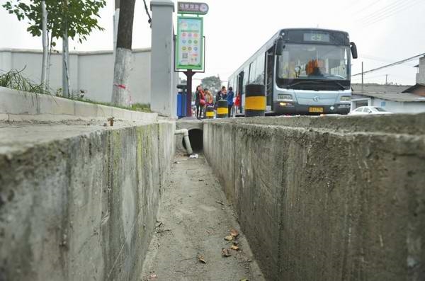 前不久,成都市民李先生在马家场公交站候车时,差点“栽到沟里”。公交站旁,就是一个宽67厘米,深80厘米的沟渠,旁边没有任何保护措施,再加上该路段没有路灯,“一早一晚很容易出问题。”周围居民称,已不止一人在此处“栽跟头”。