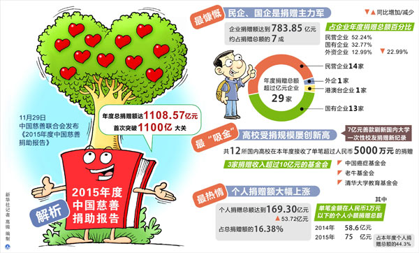 新华社北京11月29日电 题:谁最慷慨?谁最“吸金”?谁最热情?——解析2015中国慈善捐助报告