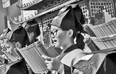 11月28日,“2016厦门首届国际集美节暨老院子景区南洋华侨寻根祭祖行”活动在福建厦门举办。作为侨乡,该活动把嘉庚精神和华侨文化及现代闽南文化有机融合、发扬光大。图为集美区后溪镇中心小学的学生在活动中诵读弟子规。