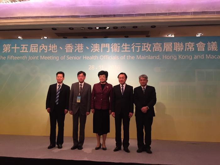 2016年11月28日下午,第十五届内地、香港、澳门卫生行政高层联席会议(简称三地会)在香港召开。香港特别行政区行政长官梁振英会见了与会三地卫生行政部门主要官员。国家卫生计生委主任李斌、香港特区政府食物及卫生局局长高永文、澳门特区政府社会文化司司长谭俊荣分别率团出席会议。来自内地、香港、澳门卫生行政代表60多人与会。本次会议的主题是传病媒介疾病防控和分级诊疗制度。