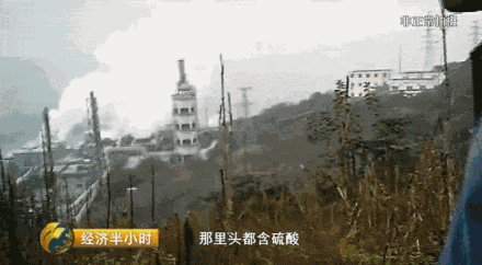 记者看到这片地里,枯死的黄豆占了一大半儿。老张说是酸雨滴到叶面上把黄豆烫死了。它的污染源就来自重庆涪陵化工厂的合成氨工厂。这家工厂就在这座山的下边。