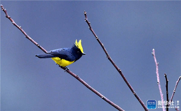 ↑12月1日,在福建省明溪县夏坊乡中溪村,冕雀在树枝上休憩。新华社记者 彭张青 摄