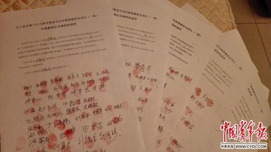 小白山村村民针对从未参与蓟县垃圾焚烧发电项目公众参与问卷调查的联合署名声明。中国青年报·中青在线记者 何林/摄