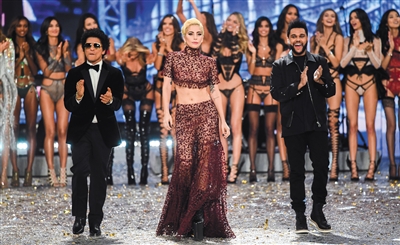 今年“维密秀”的表演嘉宾有三人:Bruno Mars、Lady Gaga和The Weeknd(从左至右)。