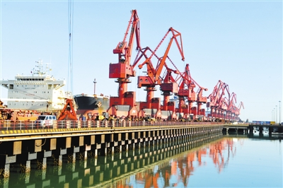 今年前10个月,河北黄骅港吞吐量达到2.04亿吨,同比增长49%,增速名列全国沿海主要港口首位,成为我国第一大能源港。图为黄骅港综合港区散杂货码头的门机在作业。