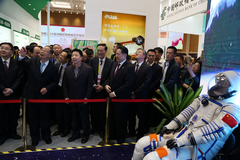 出席2016亚洲国际集邮展的嘉宾参观“太空邮局”