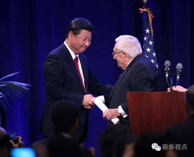 2015年9月,习近平应邀访问美国。在华盛顿州当地政府和美国友好团体举行的联合欢迎宴会上,习近平在演讲开始时专门对基辛格此前的发言表示感谢:“基辛格博士总能说出一些新颖的观点,他的介绍让我对自己也有了一个新的认识角度。”