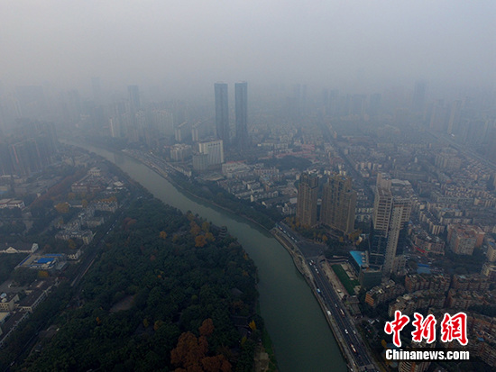 成都市区建筑笼罩在雾霾中。 张浪 摄