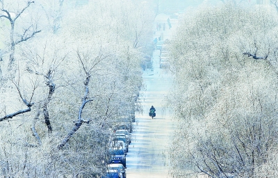 哈尔滨工业大学是国家首批“211工程”“985工程”重点建设院校。图为日前,笼罩在树挂中的哈工大校园,银装素裹,好似童话世界一般。 兰锐摄/光明图片