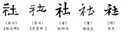 至于“社”字为何多了一点,其实这只是书法创作的需要,主要起到驻笔回锋的作用,并无任何深意。在汉隶名碑《张迁碑》《史晨碑》中都有使用,还出现在楷、行、草诸体中。