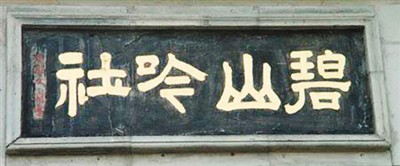 碧山吟社始建于明成化十八年(1482年),由北宋词人秦观的后人秦旭所创。秦旭崇古尚贤,晚年于无锡惠山之麓、黄公涧上,结庐建亭,名曰碧山吟社,并与无锡10位年高德劭的诗翁在此结社吟咏。十老殁后,秦旭曾孙秦瀚又于嘉靖三十三年(1554年)重修碧山吟社,再续诗社余韵,并请“吴门四家”之一的文徵明为之题匾,悬于门楣之上。此后,碧山吟社又几经兴废,终于在清乾隆以后的200余年间归于沉寂,风雅寖衰。辛亥革命后,人们才找到了碧山吟社的匾额,并于20世纪50年代以来逐步恢复重建。现在,由无锡市离退休老人为主的诗词爱好者又重组了碧山吟社,但该社留下的诸多未解之谜仍让人们困惑不已。