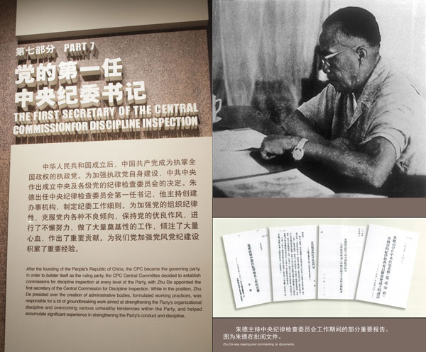 朱德同志是新中国第一任中央纪委书记。1949年11月,党中央决定成立中央纪委,由德高望重的朱德同志出任书记。他强调执政后纪律检查工作的基本任务是保护生产、巩固和纯洁党的组织、巩固党同群众的联系、保证党的集中统一,为党的纪律检查工作适应长期执政的要求指明了方向。(四川省纪委)