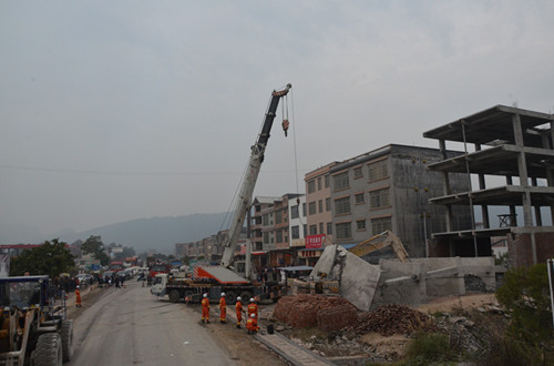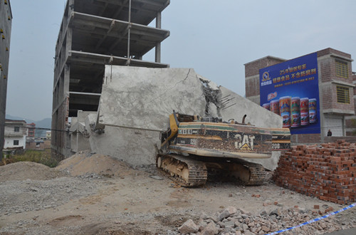 广西贺州楼房突然倒塌 拆房司机被压身亡