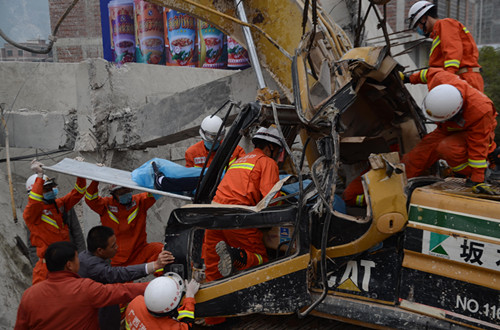 当消防官兵赶到事故现场时,发现倒塌的整个楼面压在挖掘机驾驶室上方,并把驾驶员困在了挖掘机驾驶室,现场医务人员对被困者进行了检查,确认其已经没有了生命体征。