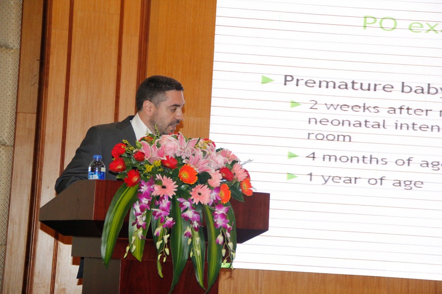西班牙斜视与小儿眼科医学专家Mr.Durán Pérez,Pablo在做主题演讲