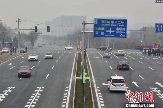 12日,壁富路(顺义区段)道路工程正式通车。这条双向六车道的主干道,将成为城市副中心往来首都机场的便捷通道,实现城市副中心与周边辖区的快速连接。图为壁富路(顺义区段)通车。 张可为 摄