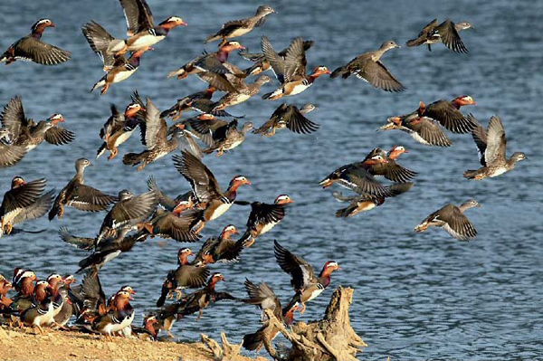 江西省婺源县赋春鸳鸯湖内鸳鸯齐飞。(江西省婺源县赋春镇纪委 汪瑜)