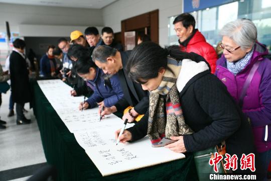 他们在甲午战争陈列馆尾厅题词留念。 杨强 摄