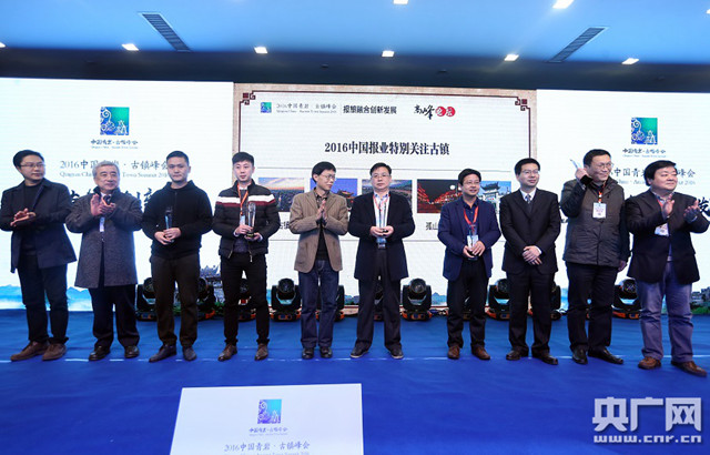 随后,贵州省报业协会会长刘庆鹰宣读了中国报业协会关于公布2016最受中国报业关注的十大古镇等奖项的决定,“最受中国报业关注的古镇”评选正式出炉。其中,最受中国报业关注的十大古镇分别是西塘古镇,镇北堡古镇,青岩古镇,泗泾古镇,震泽古镇,汶口古镇,荡口古镇,利民古镇,土城古镇,上里古镇。