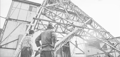 井口封着,屋顶墙缝里野草丛生。一群小鸟忽闻人声,从厂房前半人多高的枯草丛中成群飞起。一场暴雪即将落下,铅灰色的天空飘起冷冷冰雨。