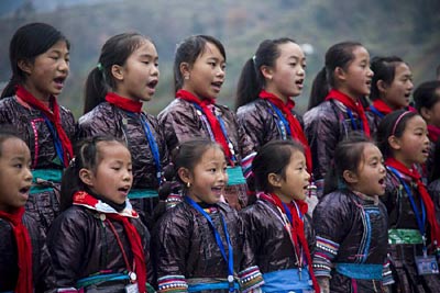12月13日,在贵州省从江县高增乡中心小学乡村学校少年宫,学生们在唱侗族大歌。近年来,贵州省从江县依托民族资源优势,将民族文化传承、创新、发展工作融入到乡村学校少年宫的建设过程中,通过整合教师、非遗传承人、民间艺人等师资力量,编写了民族文化校本教材,并开设“非遗学堂”,将苗族芦笙舞、侗族大歌、民族刺绣、剪纸等非遗文化引进中小学课堂。此举既推动了乡村学校素质教育的发展,又壮大了民族文化传承的队伍,促进非遗技艺代代相传。