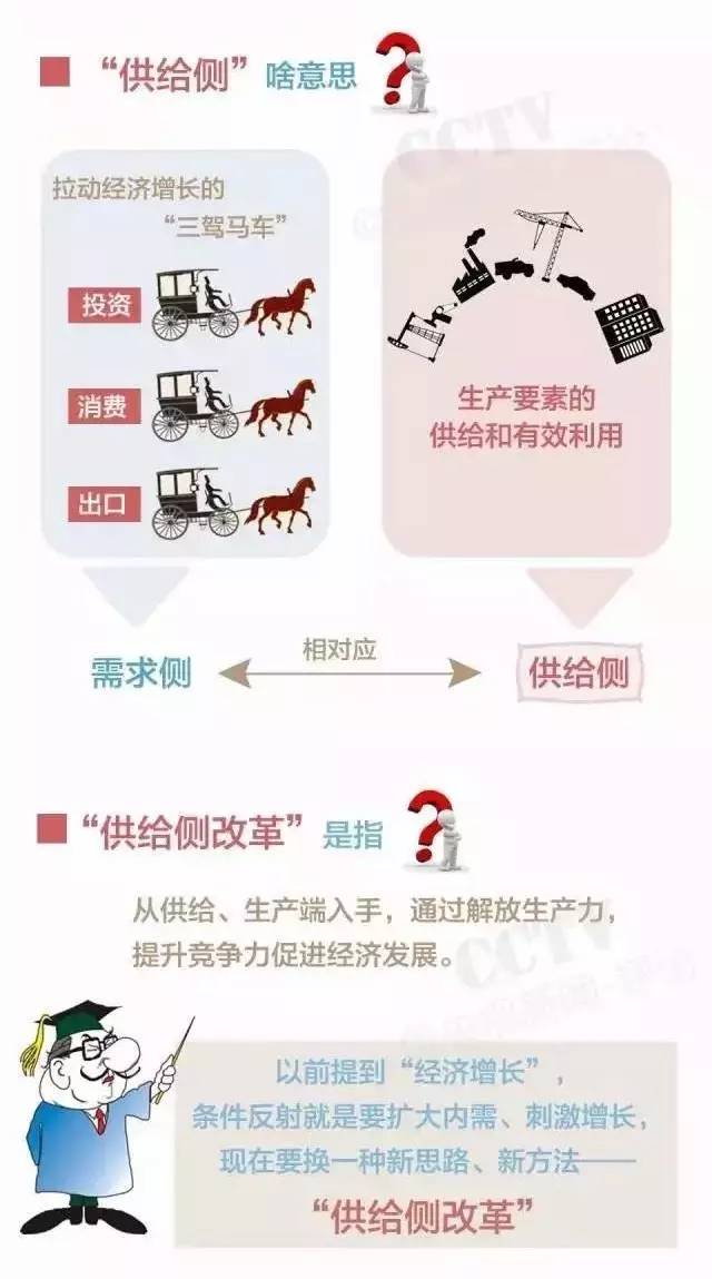 关注中国经济的人应该对“供给侧改革”这个词不陌生,到底什么是供给侧改革?2015年11月10日到18日,前后9天,中央5次提及“供给侧改革”。在此之后,供给侧改革就成了各个层级经济会议的热词,也是各大与经济有关论坛的高频词。回望这一年,“供给侧结构性改革”无疑成为了2016年中国经济的年度词语。而根据不久前召开的政治局会议,供给侧改革也是明年经济工作的重点内容。