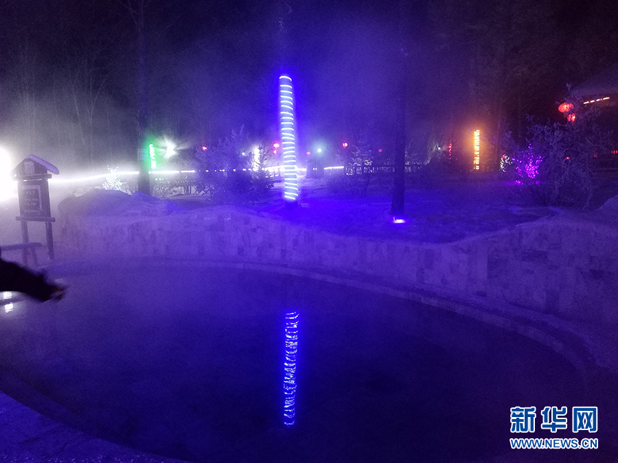 这是伊春市桃山森林冰雪玉温泉。它结合森林、冰雪、玉石、温泉、湖泊等元素于一体,让游客体验零下几十度自然条件下的“伊春温度”。新华网 张朝华 摄