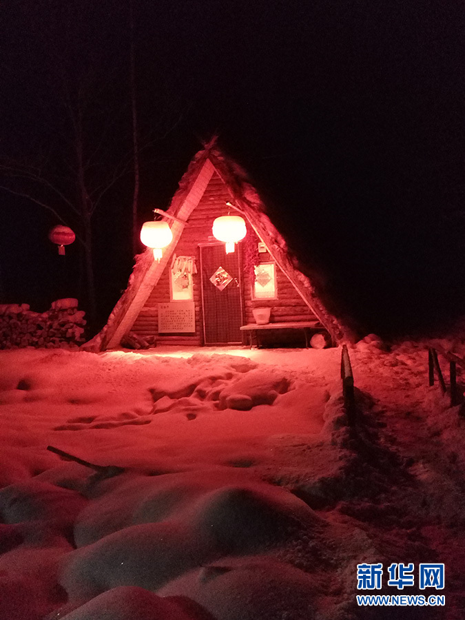 这是伊春市桃山国际狩猎场再现远古当地少数民族冬季穴居的“马架子”。新华网 张朝华 摄