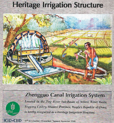 郑国渠入选“世界灌溉工程遗产”