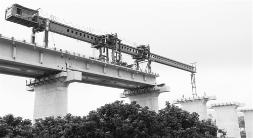 12月13日,中铁四局八分公司的施工人员正在架设深圳至茂名铁路新台大桥。深茂铁路为国家I级双线铁路,是我国沿海铁路大通道的重要组成部分,预计明年10月建成。郑红梅摄