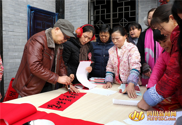 书法家正在向村民写春联。
