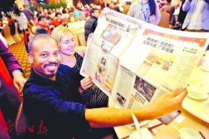 来自美国的友好人家称赞广州日报关于广州过年的报道不错。广州日报记者邵权达 摄(资料图片)