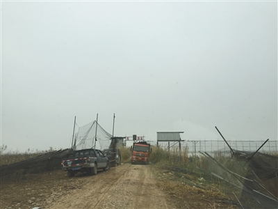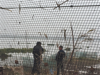 这就是刘洋斗了近6年的网围:每隔30米栽下一根8米高的钢管,钢管之间扯上密集的铁丝网,一直延绵几公里,围着水面或者湿地。