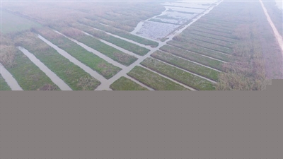 钢丝网围起来的水面,并非都是连成片的,大多被土垄切分成长方形的鱼塘,远远地看,像南方的稻田。