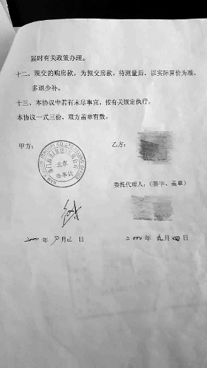 ▲住户和南光公司签的购房合同。