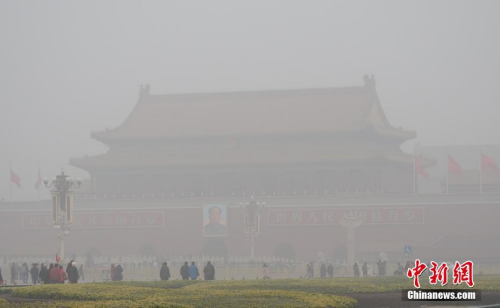 12月20日,北京天安门广场笼罩在重度雾霾中,游客明显减少。中新社记者 毛建军 摄
