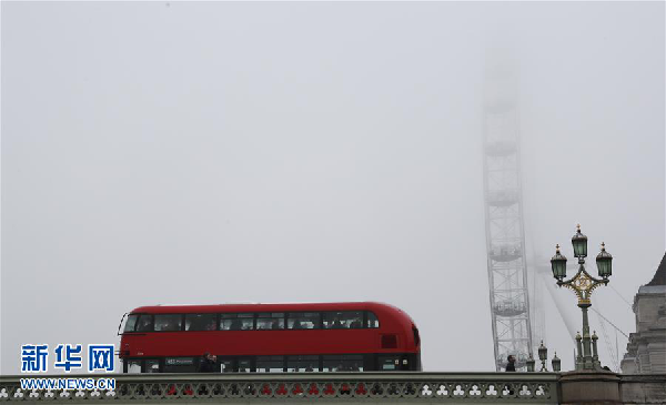 12月17日,在英国首都伦敦,行人从大雾中的泰晤士河边走过。新华社记者韩岩摄