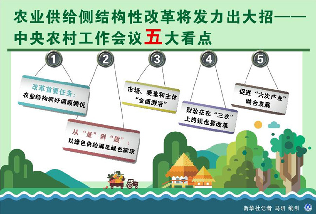 基层天地广阔,“三农”大有可为。让农村成为引人入胜的天地、农业成为令人向往的产业、农民成为令人羡慕的职业,是“三农”工作的美好愿景,也是全面建成小康社会的必然要求。让我们在以习近平同志为核心的党中央坚强领导下,贯彻落实好中央农村工作会议决策部署,明确任务、合力攻坚,凝神聚力、真抓实干,用农业供给侧结构性改革的新进展,不断开创“三农”工作的新局面。(新华社评论员)