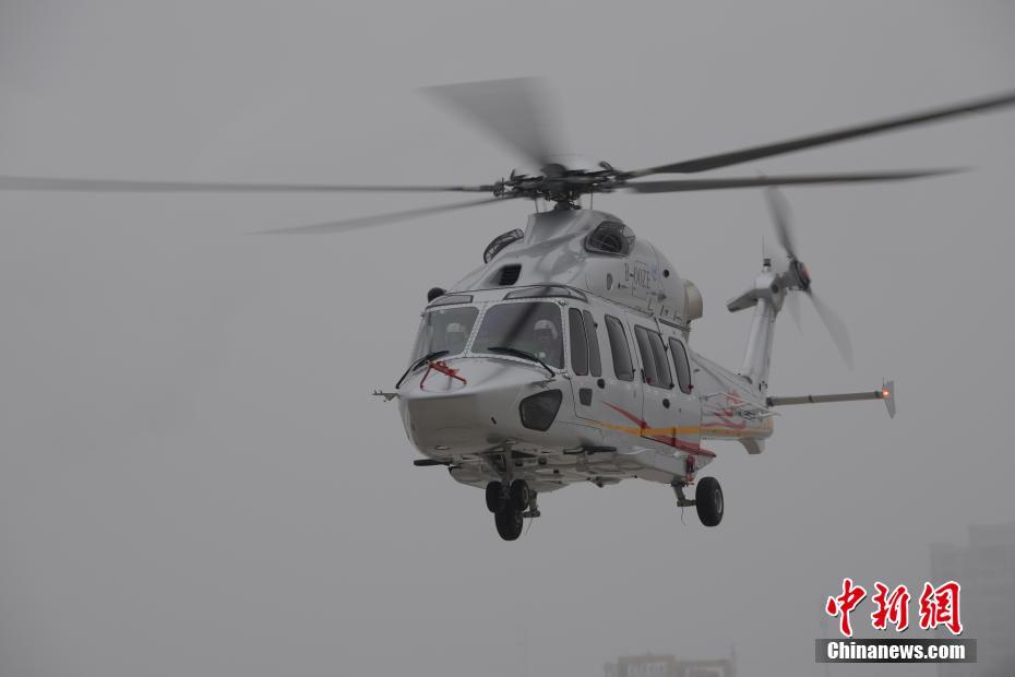 12月20日,中航工业哈尔滨飞机工业集团有限责任公司(简称中航工业哈飞)对外发布消息,由中航工业最新研制的先进中型多用途直升机AC352在中国北疆哈飞机场成功首飞。AC352是由中航工业哈飞和空客直升机公司历时10年共同研制的中型多用途直升机,采用双发动机、宽机身设计,最大起飞重量7.5吨,可搭载14至16名乘客。该机型符合最新国际适航标准,具有目视及仪表飞行规则下的昼夜飞行能力。最大经济巡航速度可达280公里每小时,最大航程大于1000公里,被公认为当今世界最安全、最舒适、最环保、最易驾驶、最经济的中型直升机之一,在同类直升机中创造了速度最快的记录。图为AC352直升机首飞。中新社记者 钟欣 摄