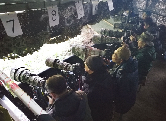 在水塘的不远处,“鸟导”们修建了摄影棚,每个棚里可容10个到18个摄影机位,观鸟者和摄影师只需蹲守棚中就可拍到美丽的鸟照。