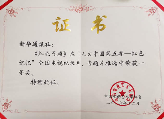 由新华社精心打造的微电影形态可视化全媒体产品《红色气质》获得北京国际微电影节“光年奖·最佳纪录片奖”。