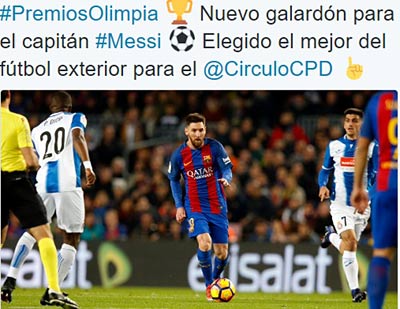 北京时间12月21日晚,2016年度阿根廷海外最佳球员(足球先生)评选结果出炉,梅西力压尤文两锋霸伊瓜因、迪巴拉成功当选。这也是巴萨头牌职业生涯第10次获此殊荣。