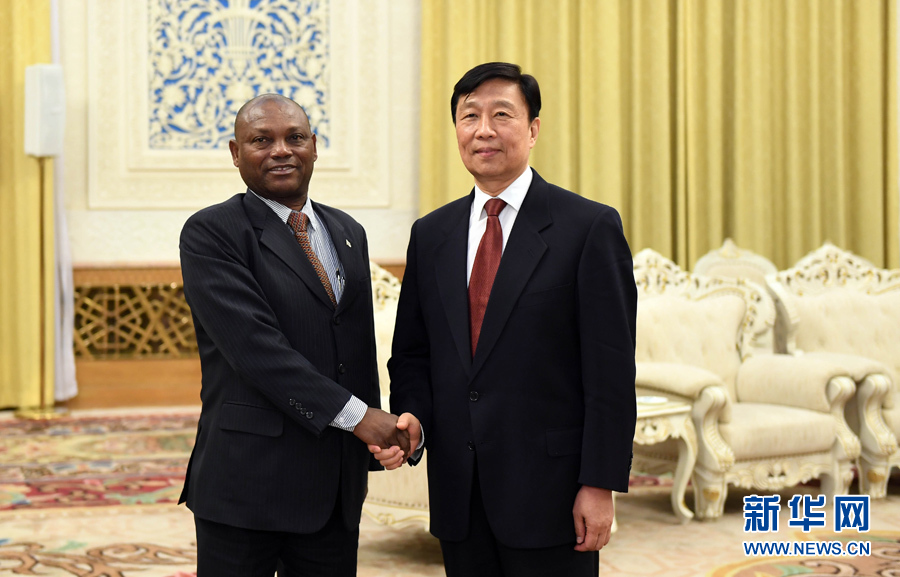 12月26日,国家副主席李源潮在北京会见圣多美和普林西比外交和海外侨民部部长博特略。 新华社记者 张铎 摄